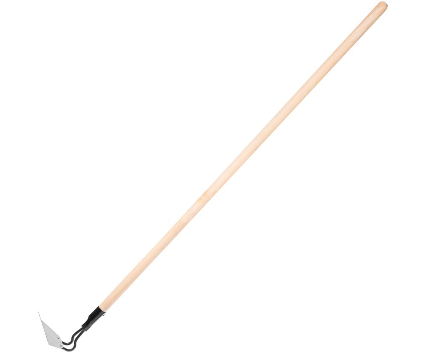 Мотыга Сибртех 62333 из нержавеющей стали, размером 150 х 90 х 1300 мм, с деревянным черенком, используется для рыхления почвы и уничтожения сорняков, а также окучивания растений. Прочный и устойчивый к коррозии инструмент прослужит долго. Черенок уменьшает нагрузку на позвоночник при длительной эксплуатации. Мотыга пригодится для ухода за садово-огородными культурами. Преимущества Эффективная работа — режущая кромка остро заточена, поэтому мотыга легко срезает сорняки и рыхлит даже плотную почву. Долговечность — черенок изготовлен из древесины твердых пород, тулейка и державка покрыты порошковой эмалью для защиты от коррозии. Прочная конструкция — полотно надежно соединено с державкой с помощью заклепок. Комфортная эксплуатация — отшлифованный черенок удобно держать в руках.