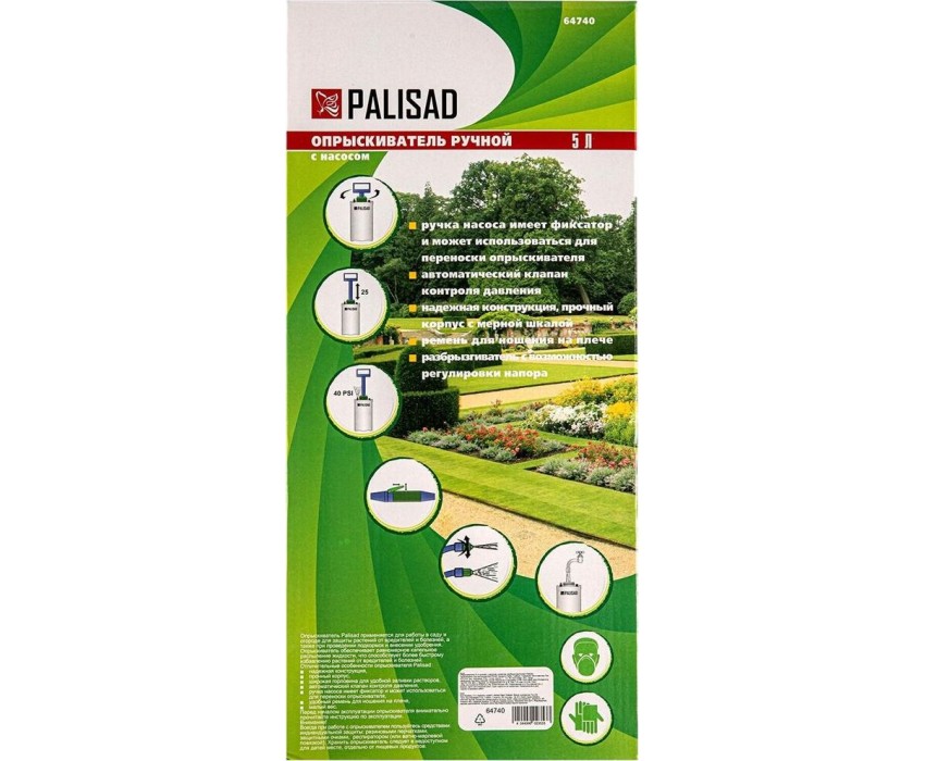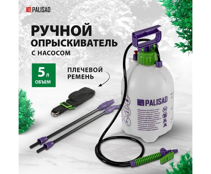 Опрыскиватель PALISAD Опрыскиватель 5 л, ручной, с насосом, шлангом, разбрызгивателем 64740