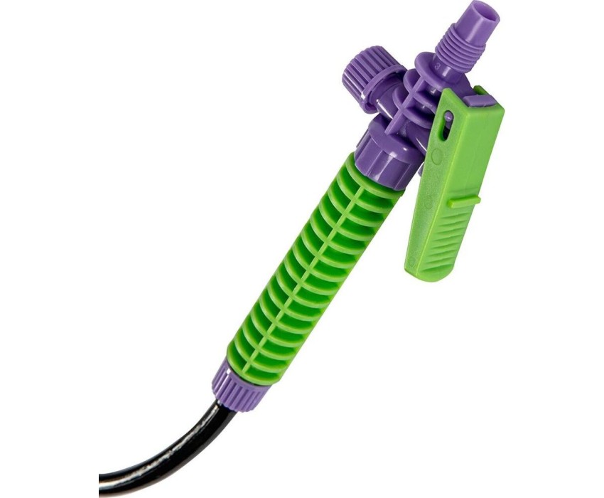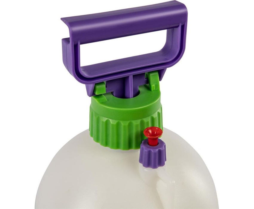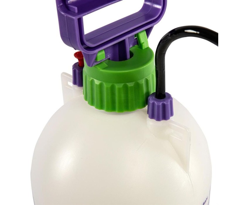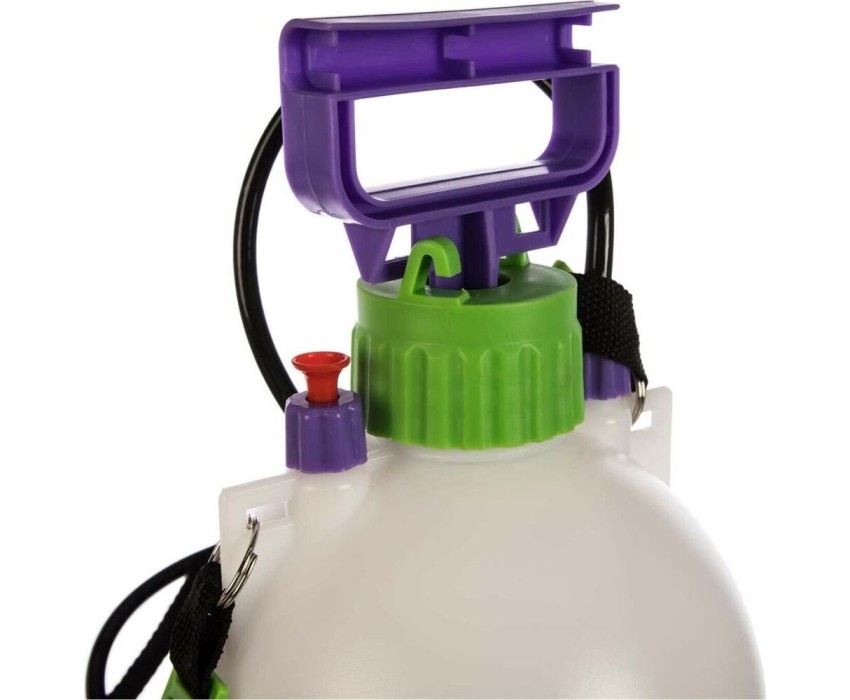 Используется в саду и огороде для защиты растений от вредителей и болезней, а также при проведении подкормок и внесении удобрений. Ручной опрыскиватель 5 литров. Конструкция имеет прочную колбу с мерной шкалой, ремень для ношения на плече во время выполнения работы, насос для создания давления, ручка которого имеет фиксатор и может использоваться для переноски опрыскивателя, автоматический клапан контроля давления, брандспойт. Распыляющая форсунка с возможностью регулировки напора. Материал прочный АБС-пластик. Максимальное давление 2.5 атм.