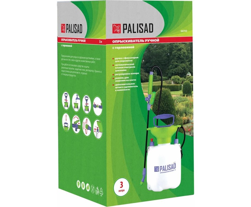 Опрыскиватель PALISAD Опрыскиватель 3 л, ручной, с горловиной, насосом, шлангом, разбрызгивателем 64743