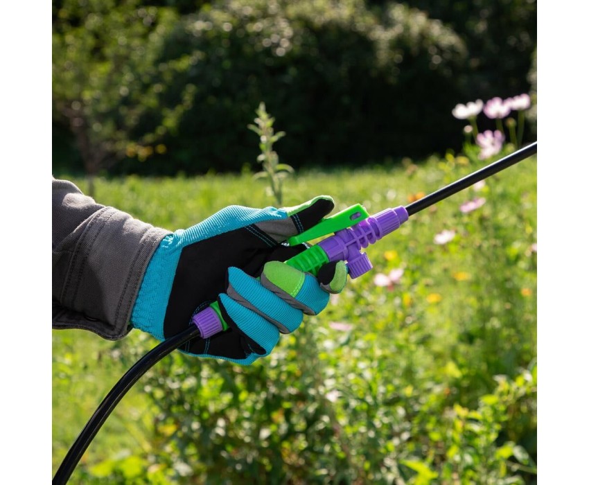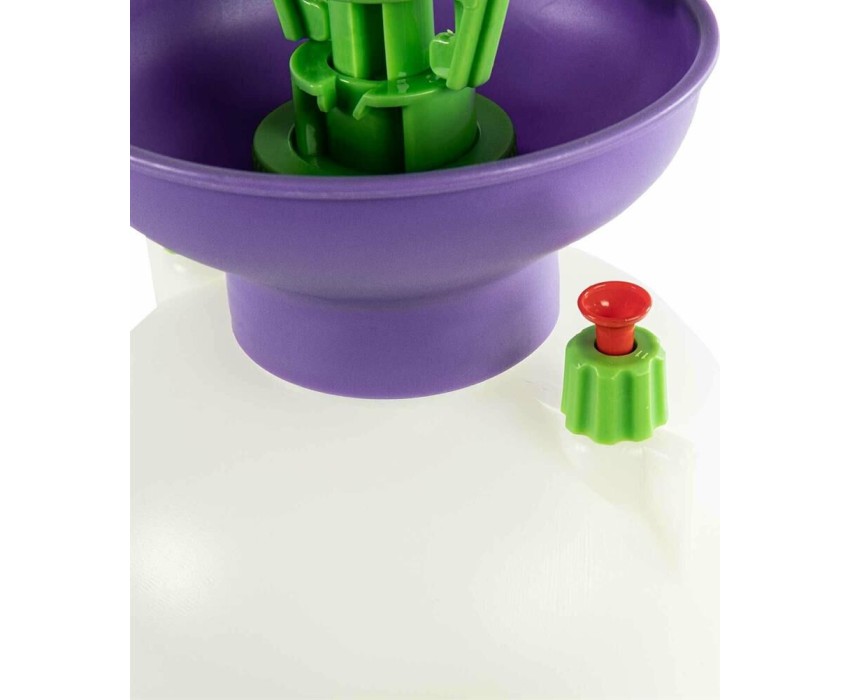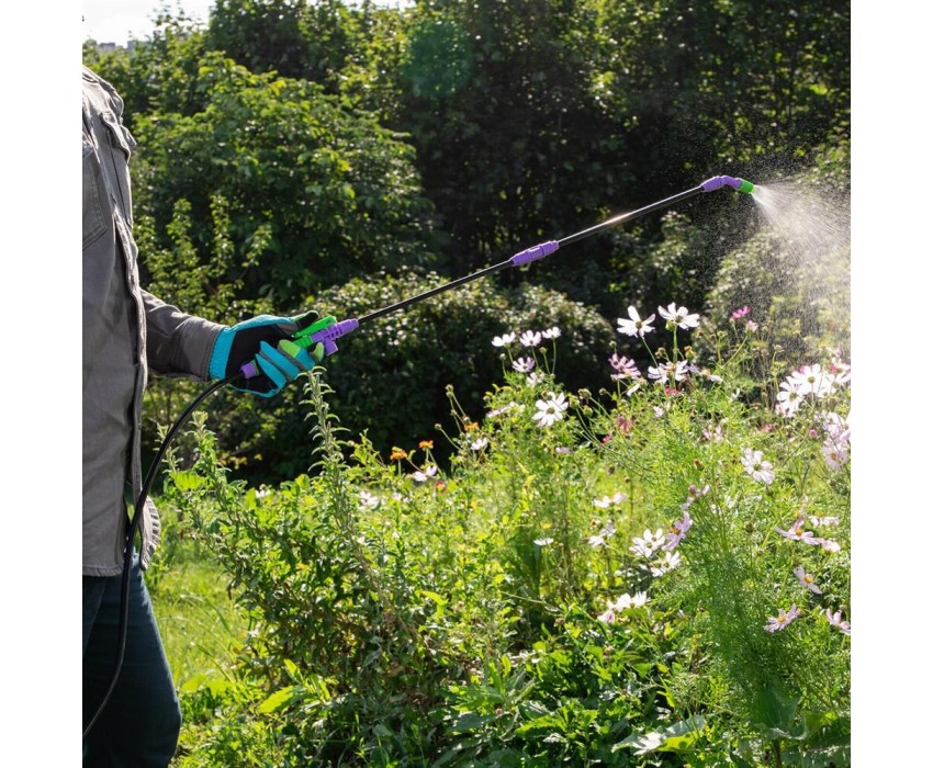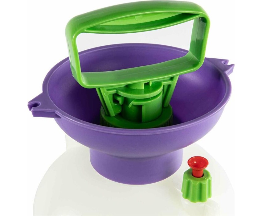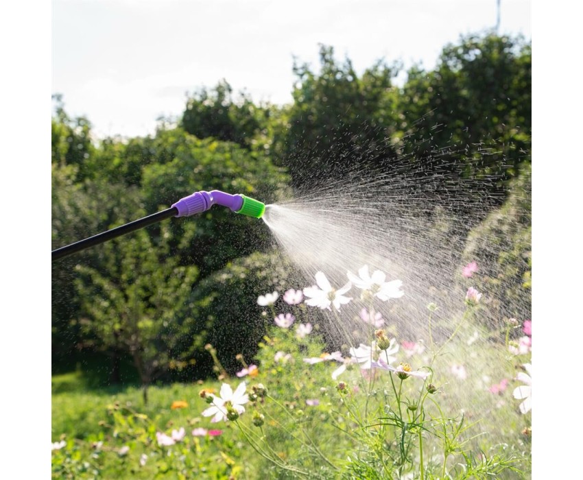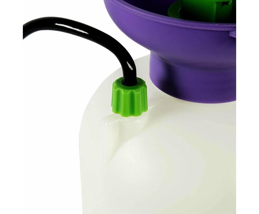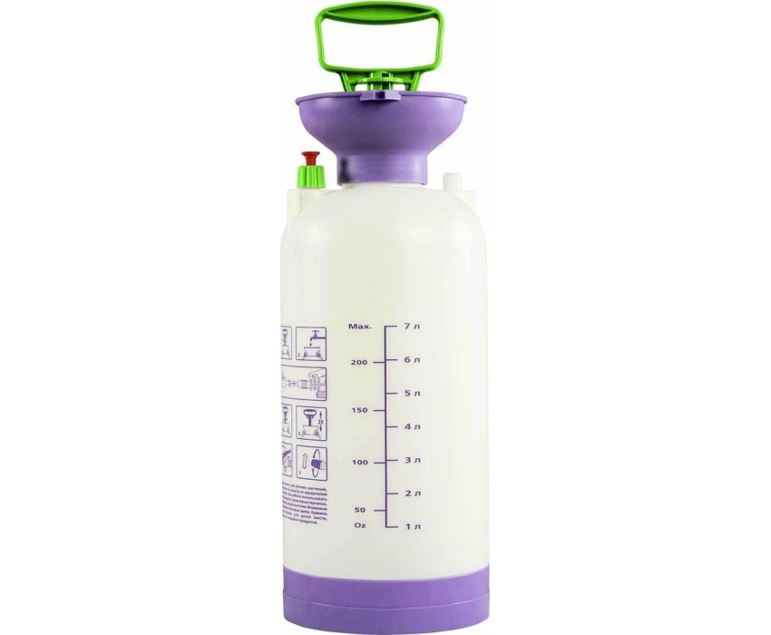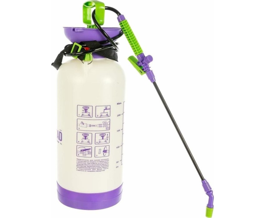 Опрыскиватель предназначен для обработки пестицидами, микрополива растений и внесения жидких удобрений в почву. Конструкция дна придает опрыскивателю устойчивость. Автоматический клапан снижает излишнее давление внутри бачка. Ручка опрыскивателя оснащена фиксатором для непрерывного полива. Широкая горловина обеспечивает быстрое и точное наполнение опрыскивателя. Преимущества: Горловина. Помповый насос. Шланг. Разбрызгиватель. Ремень для ношения на плече. Регулировка распыления. Мерная шкала.