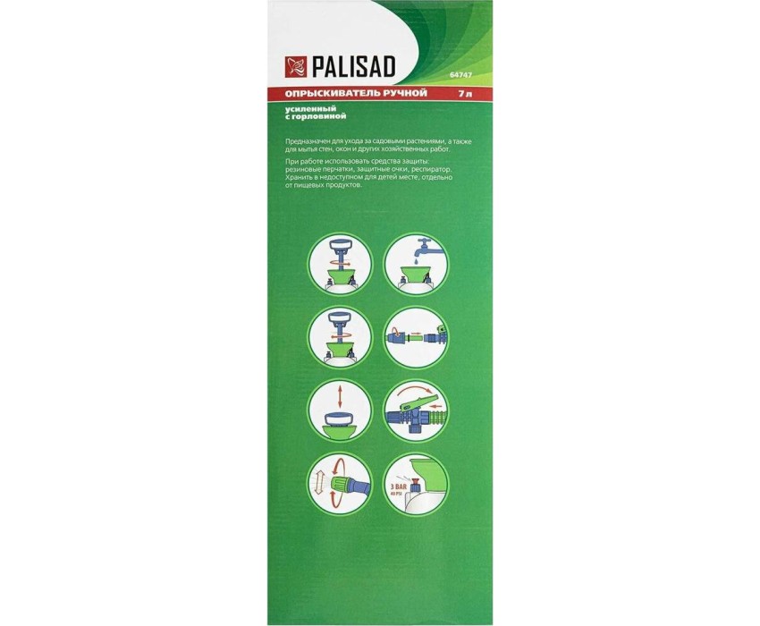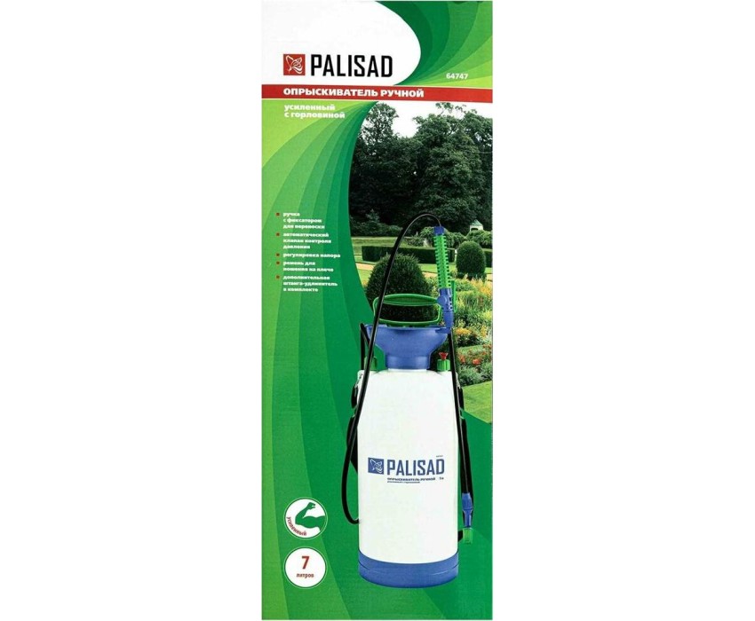 Опрыскиватель PALISAD Опрыскиватель 7 л, ручной, усиленный, с горловиной, насосом, шлангом, разбрызгивателем 64747