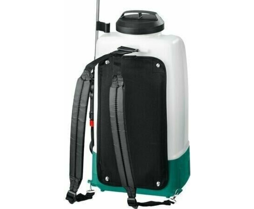 Объем бака, л 15. Расход жидкости, л/мин 5. Рабочее давление, бар 1.5 - 4. Длина шланга, м 1.7. Длина штанги, см 60. Напряжение аккумулятора, В 18. Емкость аккумулятора, А*ч 4. Тип аккумулятора Li-ion. Ручная помпа нет. Габариты, см 40x23x51. Масса изделия, кг 5.