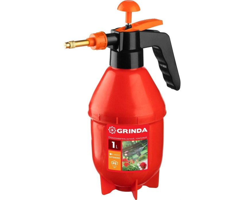 GRINDA PS-1E, объем 1 л, ручной, с удлинённым соплом, колба из полиэтилена, помповый опрыскиватель (40366)