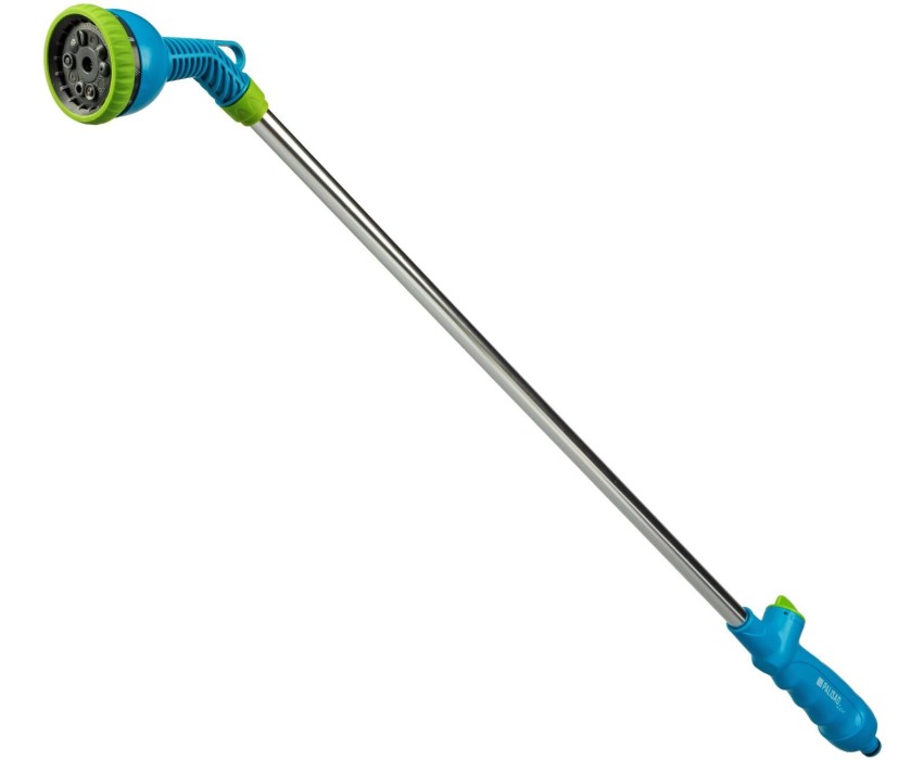 Распылитель Palisad Luxe 65801 на алюминиевой штанге длиной 850 мм, с 10 режимами работы, подходит для орошения участков большой площади и растений в цветочных горшках, а также для очистки удаленных и труднодоступных мест. Расход воды можно плавно регулировать одной рукой, что облегчает решение поставленных задач. Преимущества Устойчивость к повреждениям и износу — штанга выполнена из алюминия, а корпус — из прочного ABS-пластика. 10 режимов полива — конусное, вертикальное и горизонтальное распыление, мягкая струя, жесткая струя, веер, душ, концентрированный душ, туман, полный полив. Универсальность — распылитель совместим с элементами любых поливочных систем Palisad и Palisad Luxe.