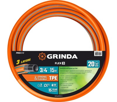 GRINDA FLEX 3, 3/4″, 15 м, 20 атм, из термоэластопласта, трёхслойный, армированный, гибкий, поливочный шланг, PROLine (429008-3/4-15)