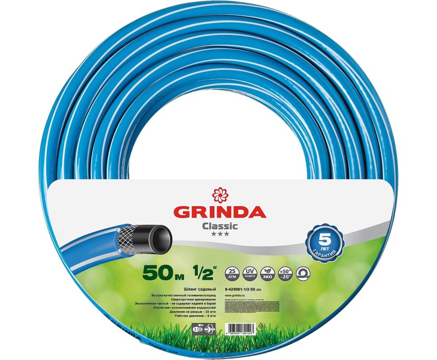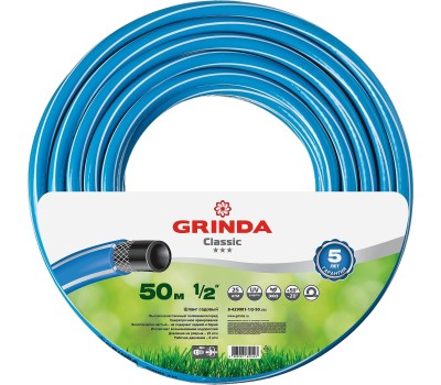 GRINDA Classic, 1/2″, 50 м, 25 атм, трёхслойный, армированный, сетчатое армирование полиамидной нитью, поливочный шланг (8-429001-1/2-50)