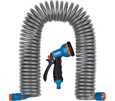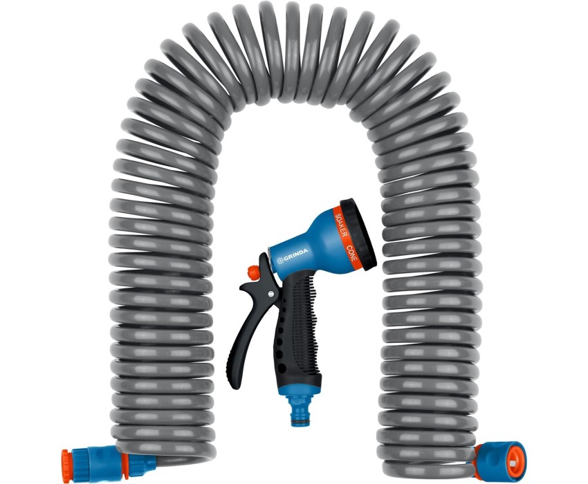 GRINDA спиральный шланг 3/8″ x 15 м, пистолет-распылитель, адаптеры, поливочный набор, PROLine (428495)
