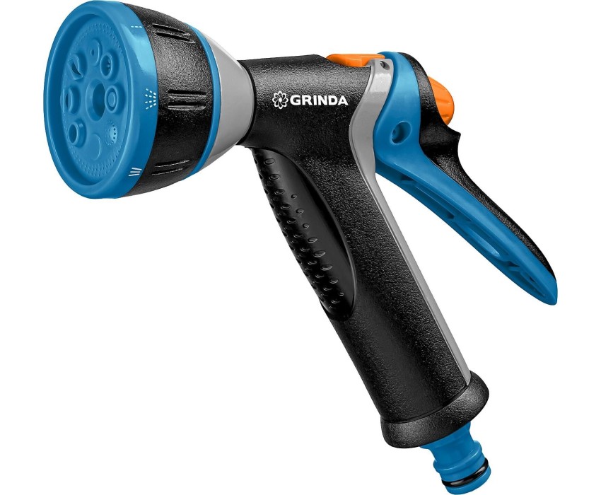 Профессиональные поливочные пистолеты-распылители GRINDA PROLine отличаются особой прочностью, надёжностью, удобством и долговечностью. Обеспечивают простое, быстрое и герметичное подключение к поливочной системе. Широкий ассортимент позволит подобрать модель идеально подходящую именно для ваших задач. Преимущества 8 режимов: мягкая струя, конус, аэрирование, жесткая струя, слабая струя, душ, вертикальный полив, плоская струя. Прочный композитный корпус. Мягкое TPR-покрытие рукоятки гарантирует уверенный и удобный хват. Курок, расположенный сзади рукоятки, оборудован фиксатором для непрерывной подачи воды. Быстросъемное соединение. Использование Применяется для всех типа полива, мойки и очистки.