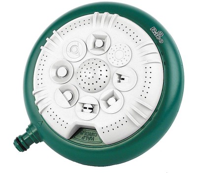 Круговые распылители с поворотными соплами RACO. Простые в использовании и очень эффективные. Преимущества -Конструкция из ударопрочного пластика гарантирует прочность и долговечность изделия., -Равномерная подача воды предотвращает образование луж., -Разнообразные формы отверстий позволяют поливать участки разной формы и площади., -Восемь режимов работы: полный круг, звездочка, квадрат, полоска, 1/4 круга, прямоугольник, полузвездочка, 3/4 круга., -Прочное основание круглой формы придает распылителю д Равномерная подача воды предотвращает образование луж. Разнообразные формы отверстий позволяют поливать участки разной формы и площади. Восемь режимов работы: полный круг, звездочка, квадрат, полоска, 1/4 круга, прямоугольник, полузвездочка, 3/4 круга. Прочное основание круглой формы придает распылителю дополнительную устойчивость. Использование Применяется для стационарного полива растений.