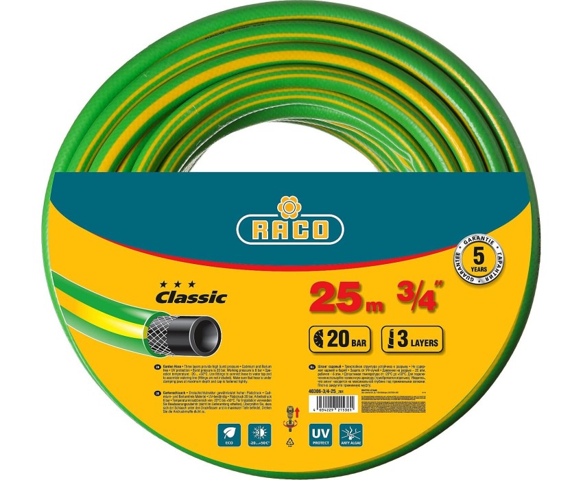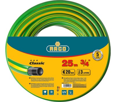 RACO CLASSIC, 3/4″, 25 м, 20 атм, трёхслойный, армированный, поливочный шланг (40306-3/4-25)