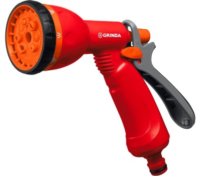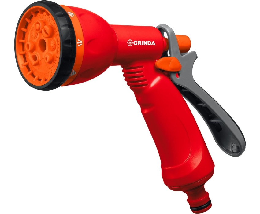 Поливочные пистолеты-распылители GRINDA удобны, надёжны и долговечны. Обеспечивают простое и качественное подключение к поливочной системе. Широкий модельный ряд с самыми современными и эффективными режимами полива. Преимущества -8 режимов работы: жесткая струя, слабая струя, конус, центр, плоская струя, душ, аэрирование, вертикальный полив, - позволят всегда подобрать максимально подходящий именно для ваших целей., Использование Применяется для всех типа полива, мойки и очистки.
