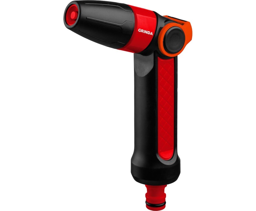 Поливочные пистолеты-распылители GRINDA удобны, надёжны и долговечны. Обеспечивают простое и качественное подключение к поливочной системе. Широкий модельный ряд с самыми современными и эффективными режимами полива. Преимущества -Лёгкая и эргономичная рукоятка с функцией плавной регулировки интенсивности распыления позволяет комфортно пользоваться инструментом одной рукой и предотвращает усталость., -Ударопрочный пластик, Ударопрочный пластик Использование Применяется для всех типа полива, мойки и очистки.