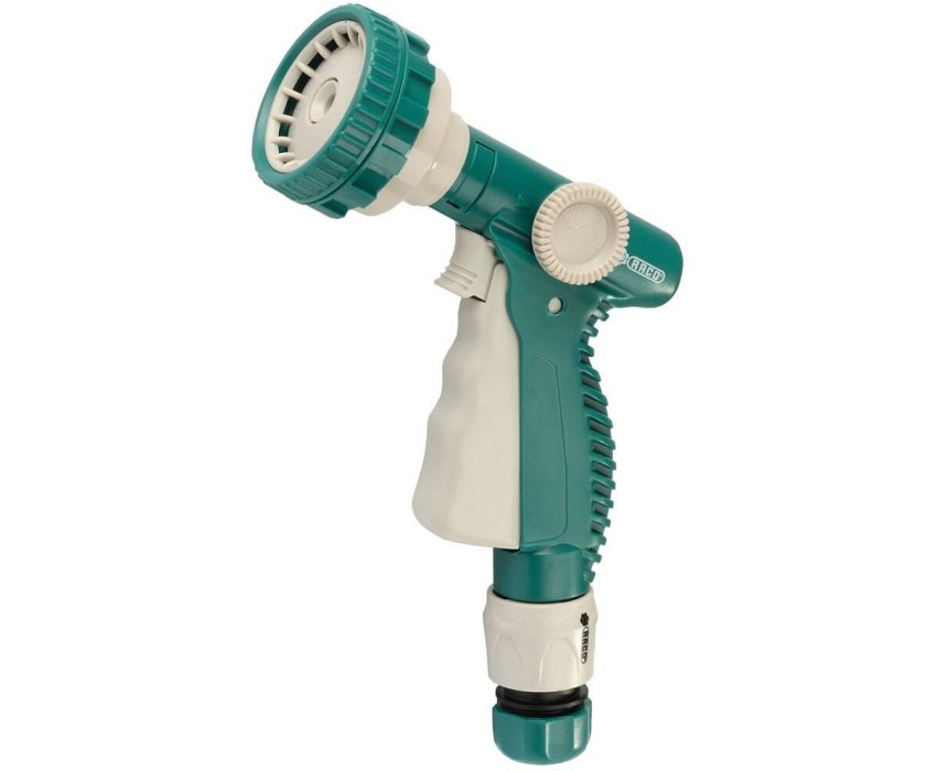 Поливочные пистолеты-распылители RACO Original являются самыми распространёнными и доступными. Изготовлены из надёжных материалов, обладают высоким уровнем качества. Преимущества -Корпус из ударопрочного ABS-пластика обеспечивает надежную защиту от протекания и позволяет работать с горячей и холодной водой., -Курок-фиксатор для непрерывного полива., -Кнопка снятия фиксации., -Пять режимов работы – мягкая струя, жесткая струя, распыление, конус, аэрирование., -В комплект входит соединитель Original на 1/2″., Курок-фиксатор для непрерывного полива. Кнопка снятия фиксации. Пять режимов работы – мягкая струя, жесткая струя, распыление, конус, аэрирование. В комплект входит соединитель Original на 1/2″. Использование Применяется для полива растений при подключении к садовому шлангу