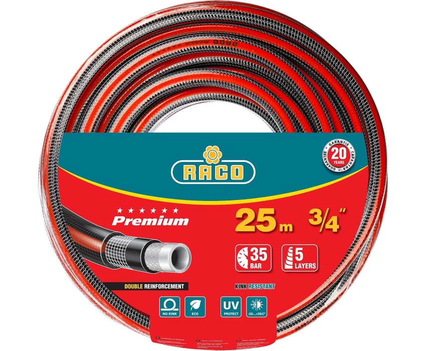 RACO PREMIUM, 3/4″, 25 м, 35 атм, пятислойный, усиленный двумя слоями армирования, поливочный шланг (40300-3/4-25)