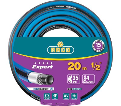 RACO EXPERT, 1/2″, 20 м, 35 атм, четырёхслойный, армированный, поливочный шланг (40302-1/2-20)