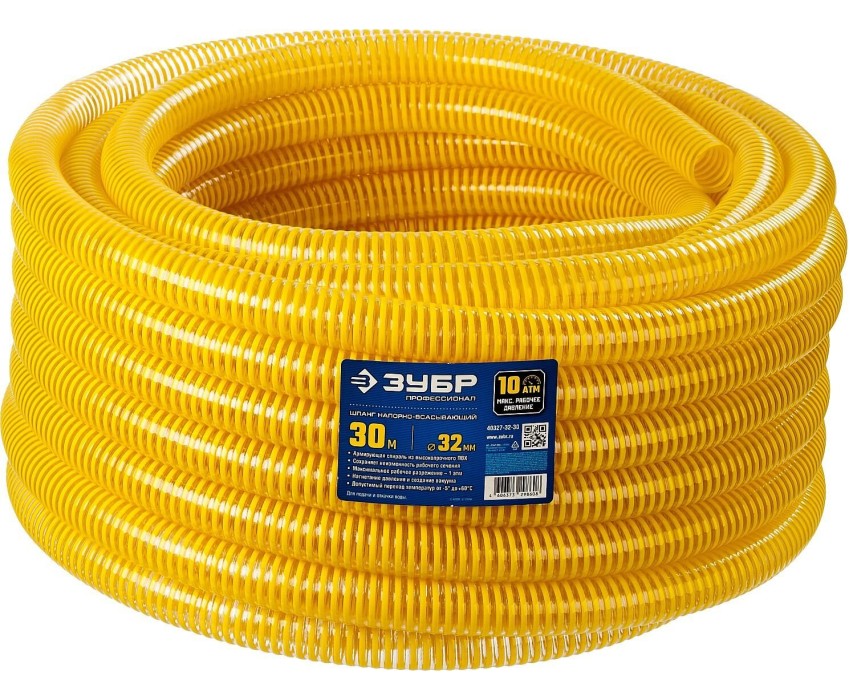 ЗУБР 32 мм x 30 м, 10 атм, со спиралью ПВХ, напорно-всасывающий шланг, ПРОФЕССИОНАЛ (40327-32-30)