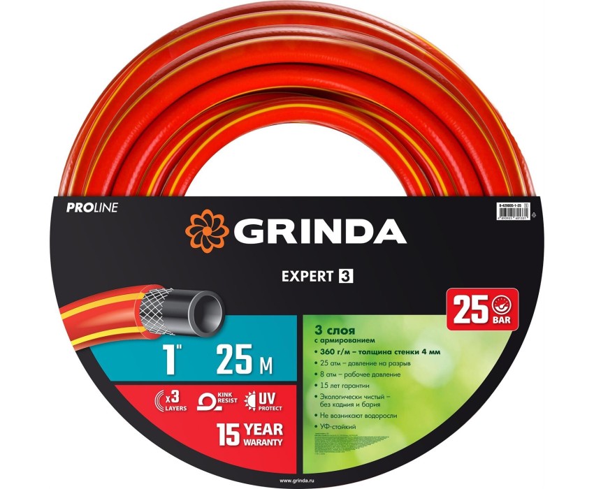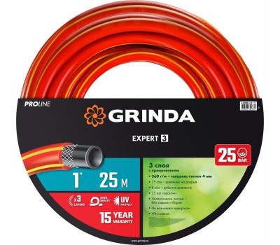 GRINDA EXPERT 3, 1″, 25 м, 25 атм, трёхслойный, армированный, поливочный шланг, PROLine (8-429005-1-25)