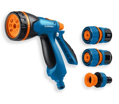 GRINDA B-834, пистолет поливочный B-8, коннектор 3/4, конектор 3/4 с автостопом, адаптер с внутр. резьбой 1/2х3/4, набор поливочный, PROLine (429113)