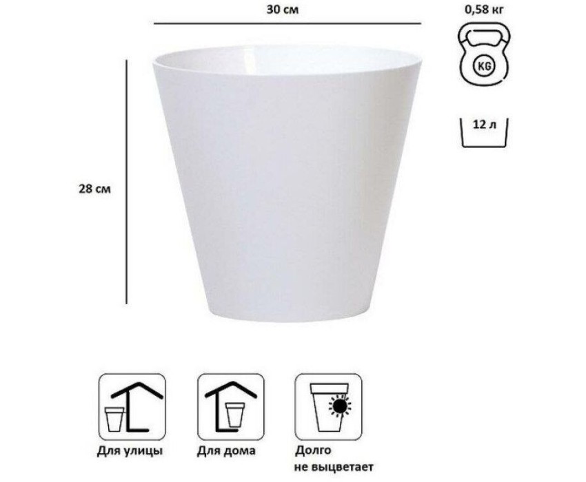 Кашпо для цветов Tubus является замечательным украшением садового интерьера, дома, зоны отдыха. Благодаря прочному пластику изделие обладает устойчивостью к ультрафиолетовым лучам. • Размер (ДМхВ): 300х280 мм • Объем: 12 л • Материал: пластик • Цвет: белый • Вес брутто: 0,58 кг • Количество в упаковке: 10 штук • Производитель: Prosperplast • Страна: Польша