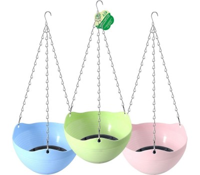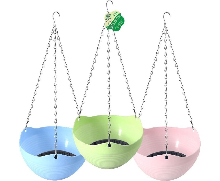 Подвесное кашпо предназначено для размещения растений. Наличие дренажной сетки препятствует застою воды в кашпо и предохраняет растения от загнивания и появления плесени. Может использоваться как снаружи, так и внутри помещения. Подвешивается на трех цепочках, объединенных удобным крюком. Изготовлено: кашпо и сетка из пластмассы (полипропилен), цепочки и крюк из металла с покрытием. Диаметр 15 см, глубина 8,5 см.