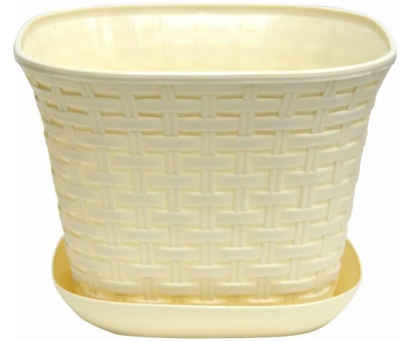Кашпо квадратное "Ротанг" 3,4 л с поддоном (слоновая кость). Размер (ДхШхВ) мм 209х209х150.
