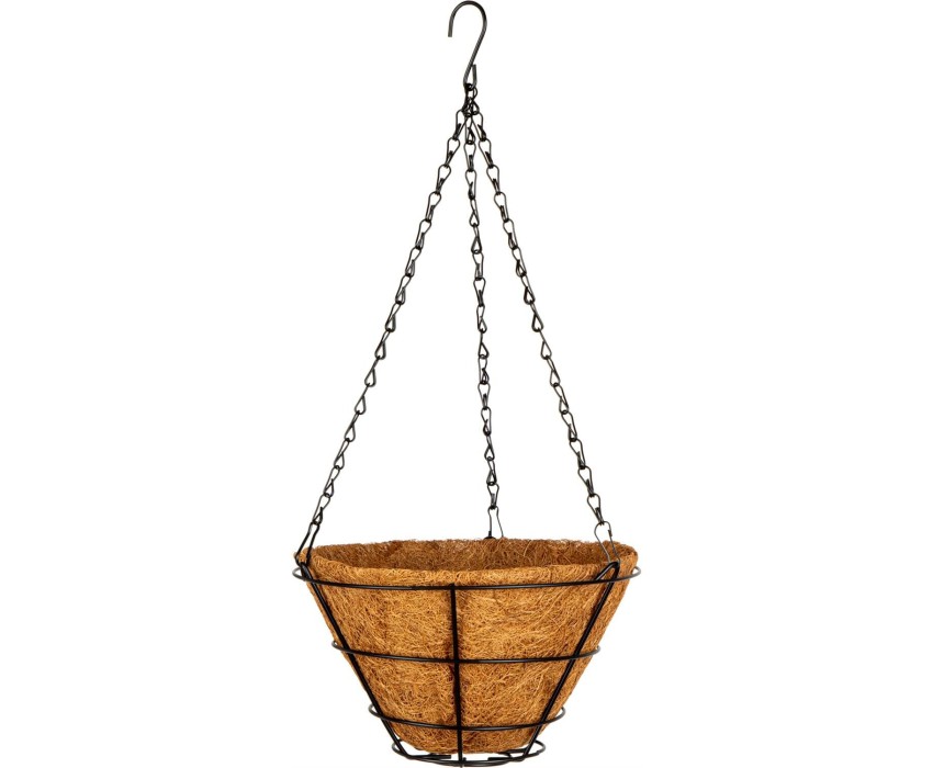 Подвесное кашпо Palisad 69020 диаметром 25 см, с вкладышем из коковиты в форме конуса, используется для посадки ампельных и вьющихся растений. Экологически чистая коковита отлично удерживает влагу и обеспечивает аэрацию корневой системы, что способствует правильному росту растений. Кашпо подходит для подвешивания как внутри, так и снаружи помещения, станет прекрасным украшением дома или сада. Преимущества Прочность и долговечность — стальной каркас и цепочки покрыты краской для защиты от коррозии. Функциональность — горшок не нужно покупать отдельно, растения можно размещать в самом вкладыше. Продуманная конструкция — кашпо оснащено надежным крючком для подвешивания.