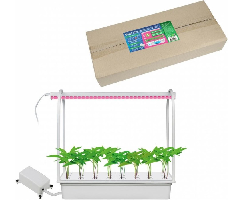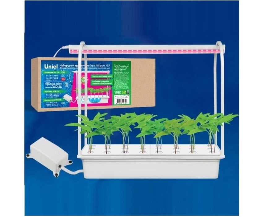 Набор для гидропоники Минисад AQUA. светильник для растений светодиодный с подставкой и компрессором. Спектр для рассады и цветения. Белый. (UL-00004496) Высота изделия, мм - 540; Длина изделия, мм - 540; Материал корпуса (изделия) - сталь, пластик; Минимальная партия - 1; Мощность, Вт - 10; Срок гарантии, мес. - 18 месяцев; Срок годности - не ограничен; Фотосинтетический фотонный поток, мкмоль/c - 11; Цвет корпуса (изделия) - белый; Частота, Гц - 50; Ширина изделия, мм - 220