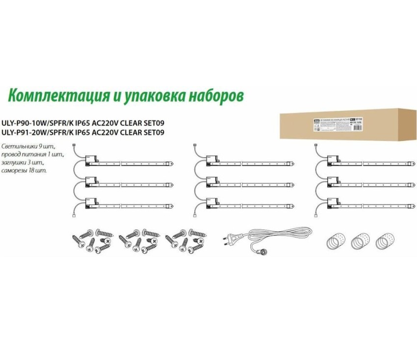 Светильник для растений светодиодный линейный UNIEL (UL-00003853) для растений ULY-P91-20W/SPFR/K IP65 AC220V CLEAR KIT09