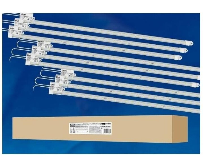 Светильник для растений светодиодный линейный. 1200мм. Спектр для фотосинтеза. В составе набора из 9-ти штук. (UL-00003853) Входная частота, Гц - 50; Входное напряжение, В - 220; Высота изделия, мм - 8; Диапазон рабочих температур, °С - от 0 до +45; Длина изделия, мм - 1 190; Индекс цветопередачи, Ra - 65; Класс энергопотребления - A+; Материал корпуса (изделия) - алюминий, пластик; Минимальная партия - 1; Мощность, Вт - 20; Площадь освещения, м2 - 1,2см (для 20см), 2,25см (для 60 см); Последовательное соединение, шт. - <15; Свет - Спектр для фотосинтеза; Способ установки - накладной; Срок гарантии, мес. - 24 месяца; Срок годности - не ограничен; Срок службы, ч - 30000; Тип - для растений; Угол светового потока, ° - 120; Фотосинтетический фотонный поток, мкмоль/c - 35; Цвет корпуса (изделия) - прозрачный; Ширина изделия, мм - 40