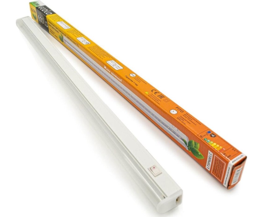 Светодиодный линейный светильник Т5 с выключателем (сетевой шнур без вилки, жесткий коннектор) Ecola LED linear для растений. Цвет: белый Мощность: 6W Напряжение: 220V Форма: линейный Степень влагозащищенности: IP20 Размеры: 575х21х34