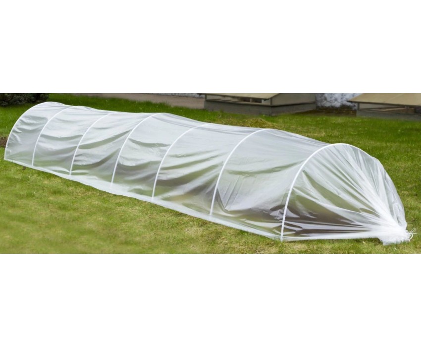 Каркас парника изготовлен из прочной и легкой трубы ПВХ 12 мм. Покрыт полиэтиленовой пленкой 50 мкм, которая поддерживает оптимальный микроклимат в прохладное время года. Идеально подходит для защиты посеянных семян от птиц и насекомых. Отличается быстрым и легким монтажом. При хранении в разобранном виде занимает мало места. Размер конструкции в собранном виде 7 х 1,2 х 0,6 см. КОМПЛЕКТАЦИЯ: Укрывная пленка - 2 х 8,5 м. Труба ПВХ (1 м) - 20 шт. Соединители 10 шт. Колышки - 2 шт. Шпагат - 2 шт.