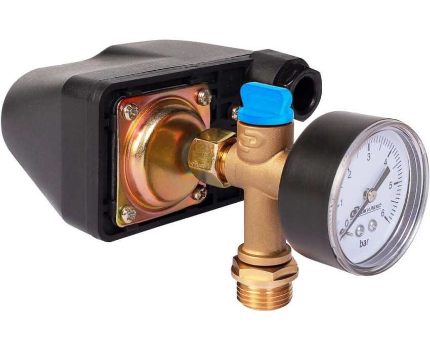 Вес: 0.6. Высота: 112. Длина: 198. Комплектация: штуцер, манометр, реле давления, футорка, заглушка. Ширина: 70. Максимальное рабочее давление: 5.5. Минимальное рабочее давление: 1. Нижний предел давления: 1. Верхний предел давления: 5.5. Вес упаковки (ед): 2.4. Гарантия: 24 мес.. Нижний предел давления: 1 Атм. Верхний предел давления: 5.5 Атм. Рабочее давление: 1 Бар- 5.5 Бар