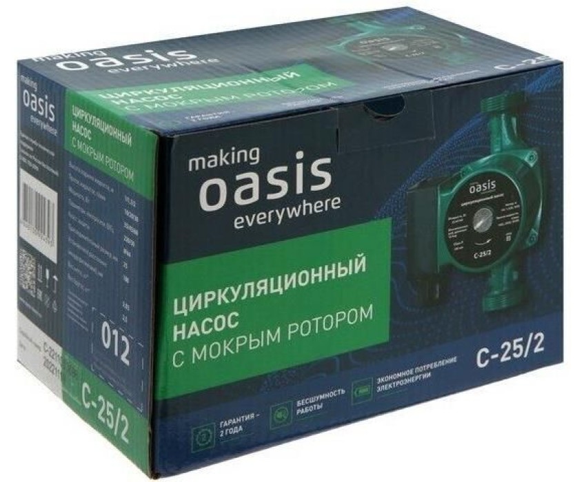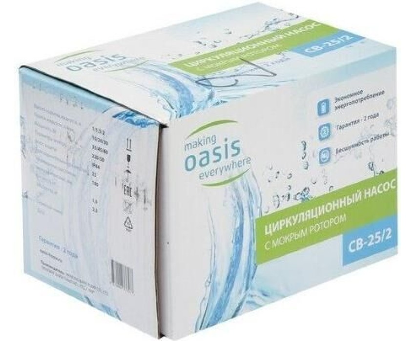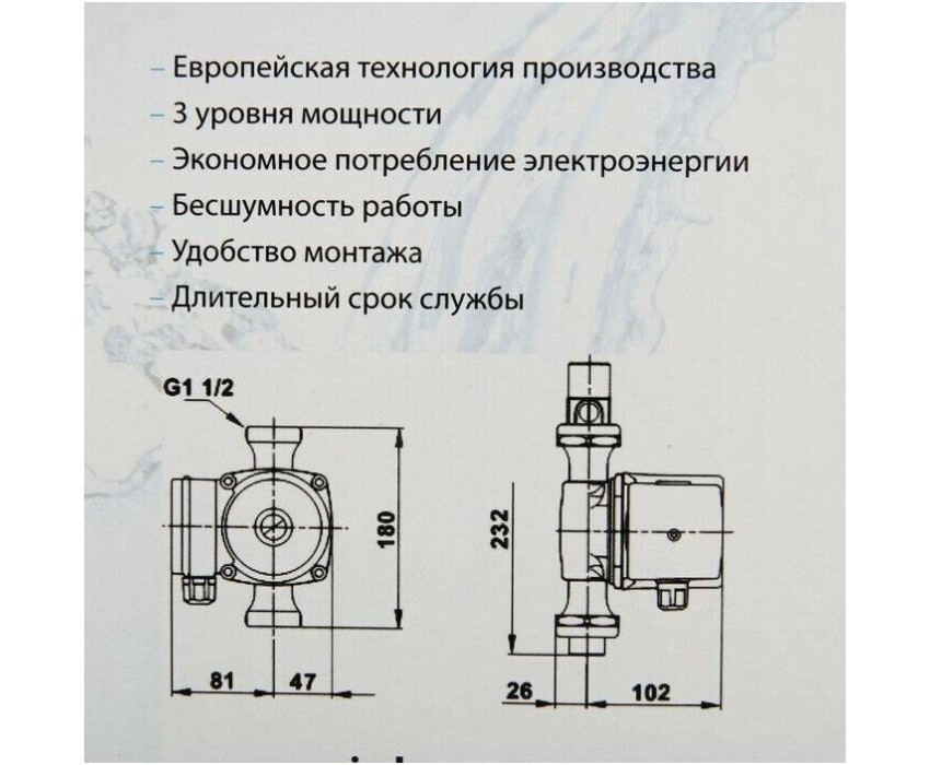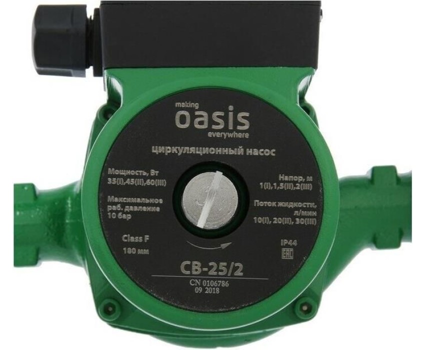 Циркуляционный насос с мокрым ротором (без провода), Максимальная высота подъема жидкости 2 м, максимальный проток жидкости 30 л/мин, максимальная мощность 60 Вт, установочное расстояние между фитингами 180 мм, керамический вал и подшипники, медная обмотка двигателя