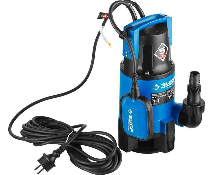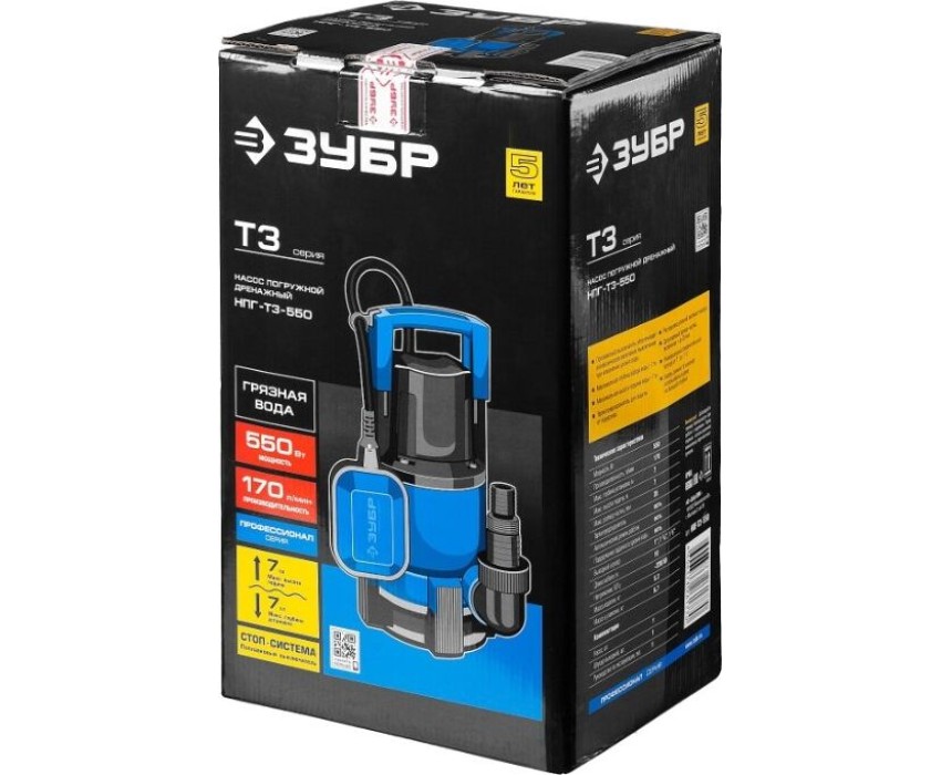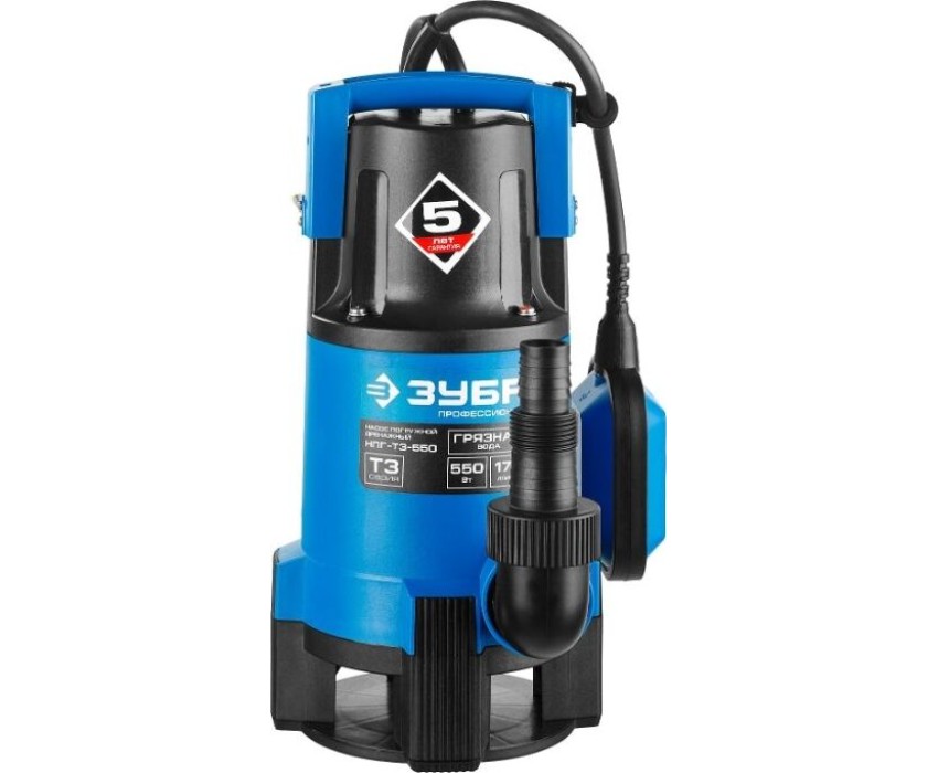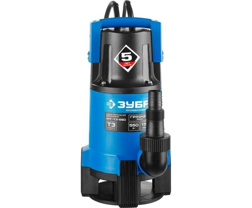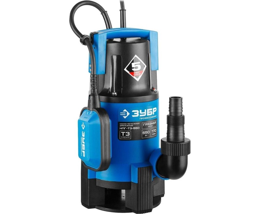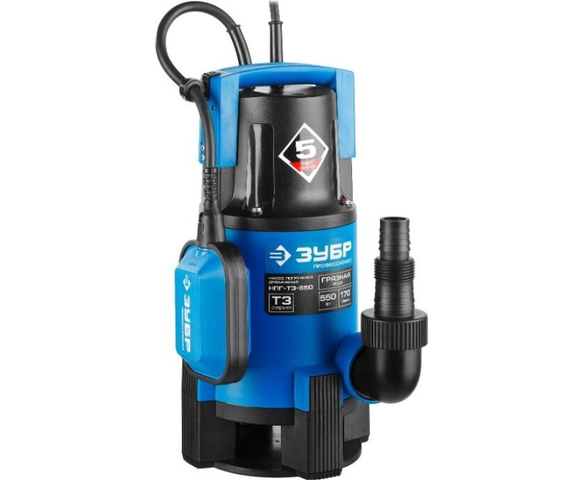 Дренажный насос ЗУБР НПГ-Т3-550 Насос погружной дренажный для грязной воды 550 Вт, 170 л/мин
