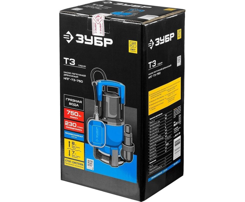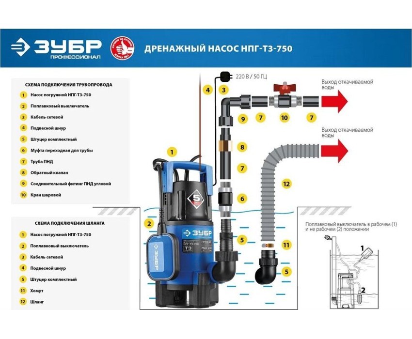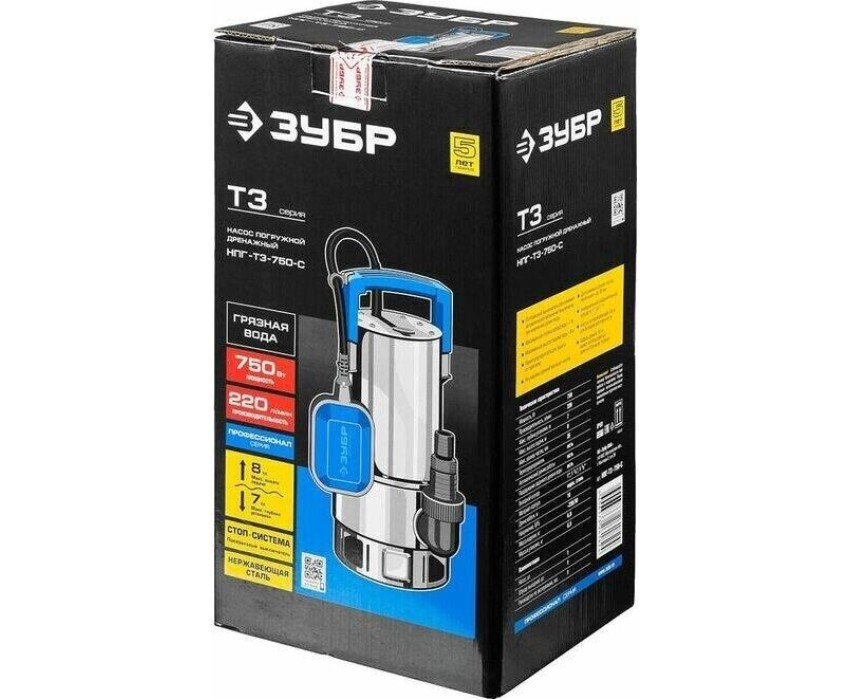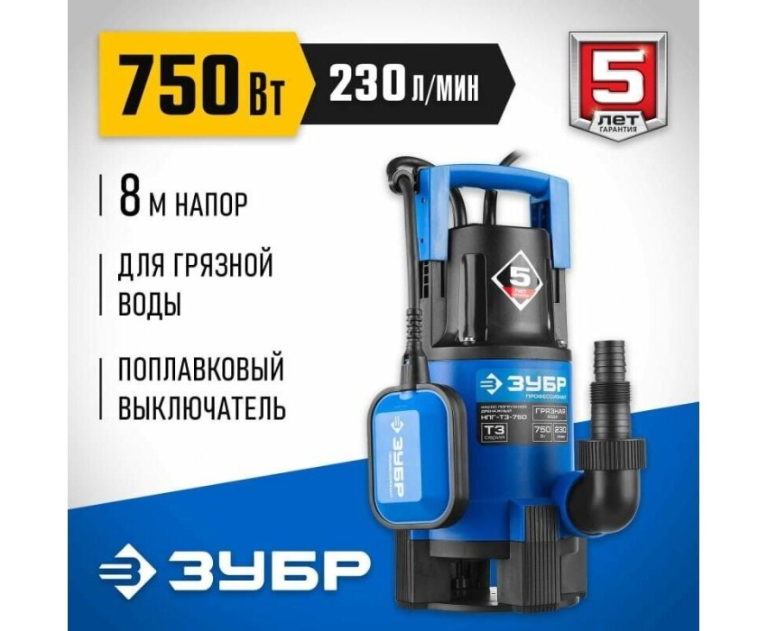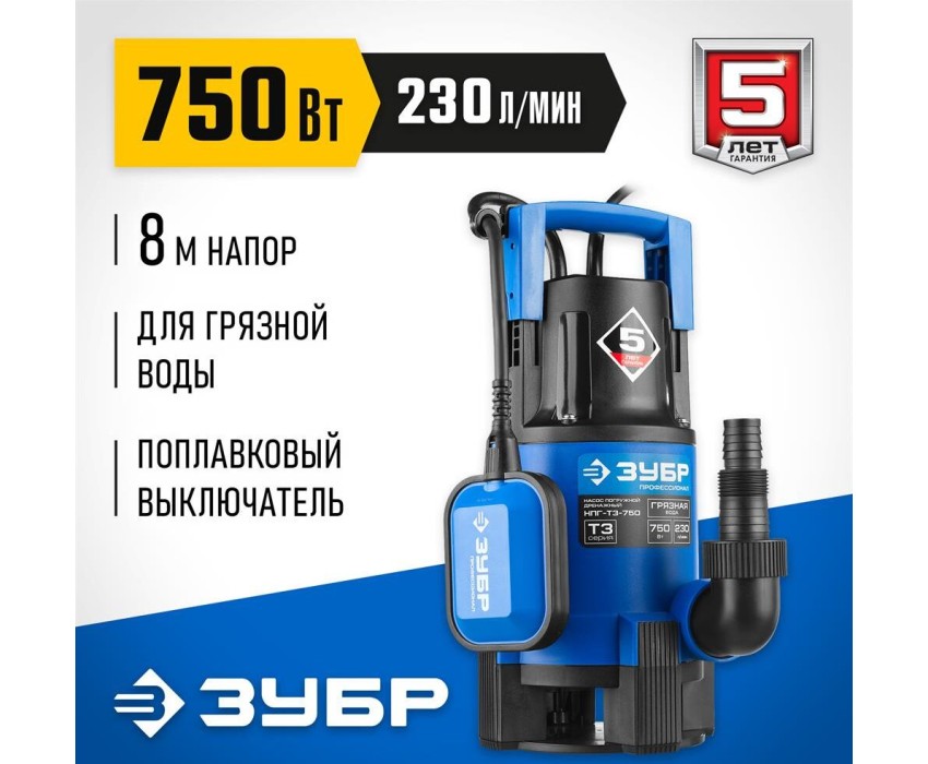 Дренажный насос ЗУБР НПГ-Т3-750 Насос погружной дренажный для грязной воды