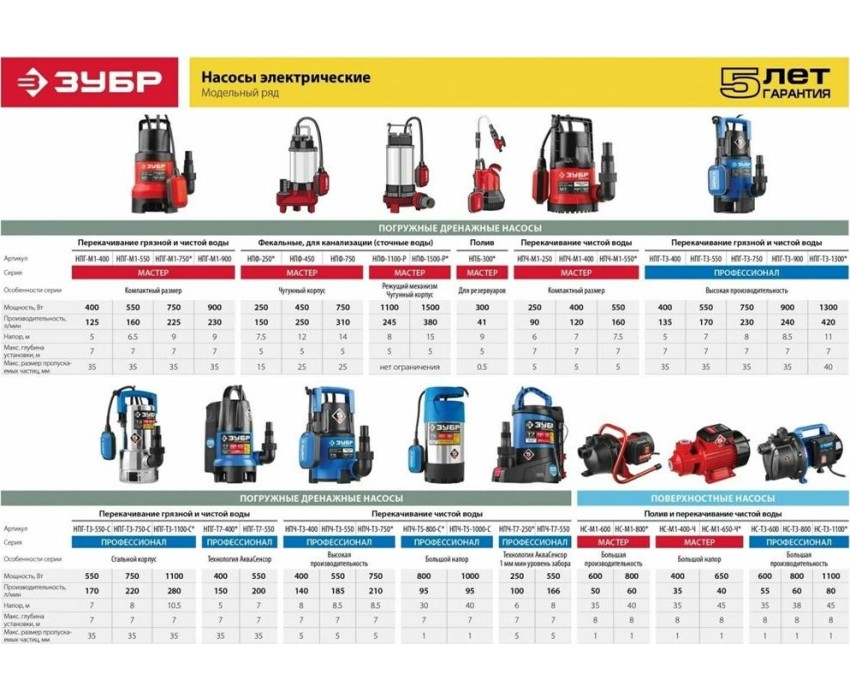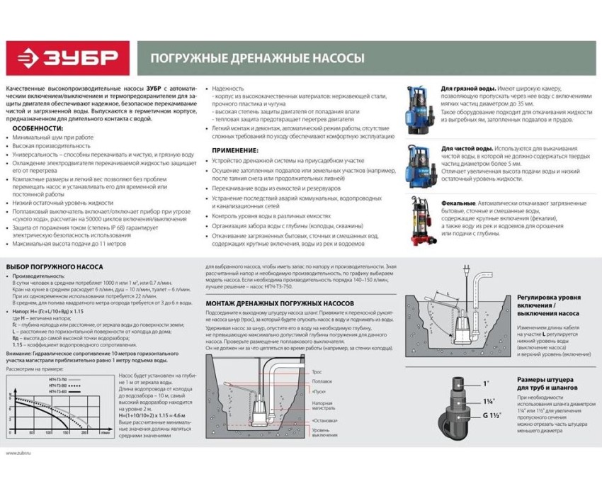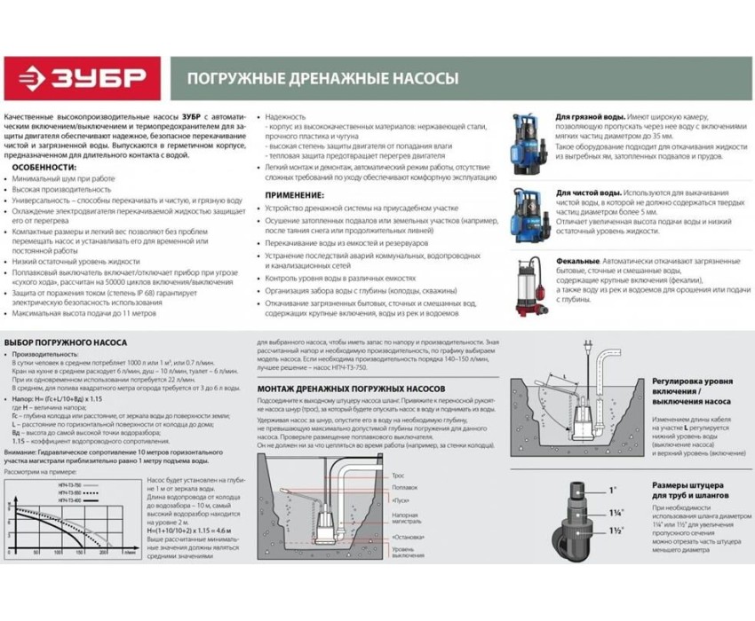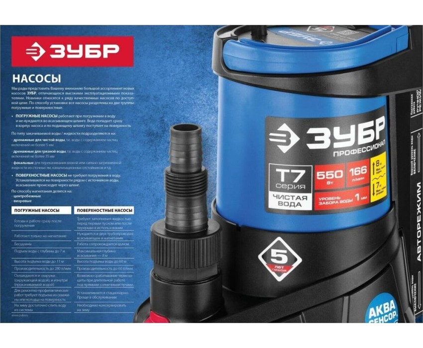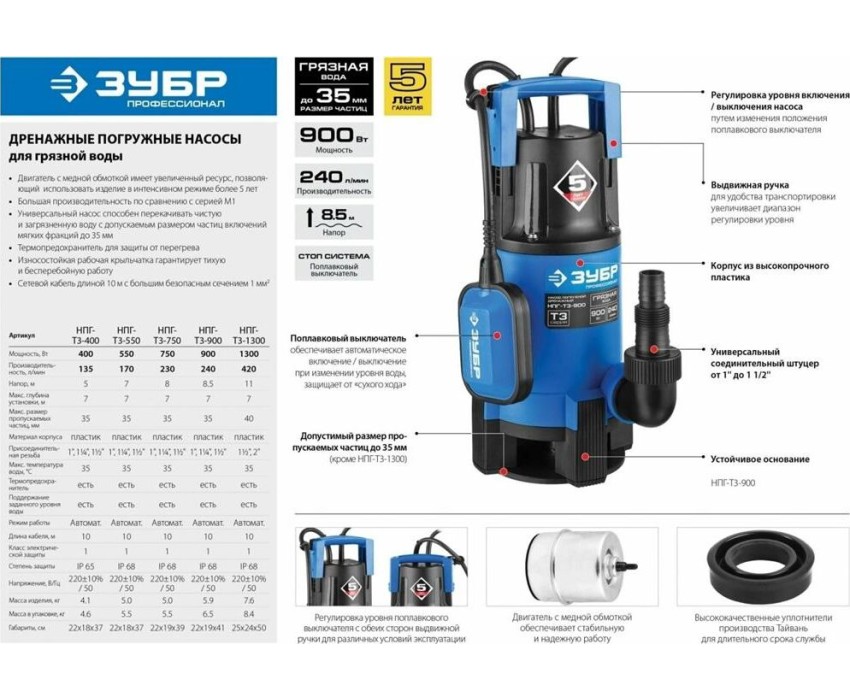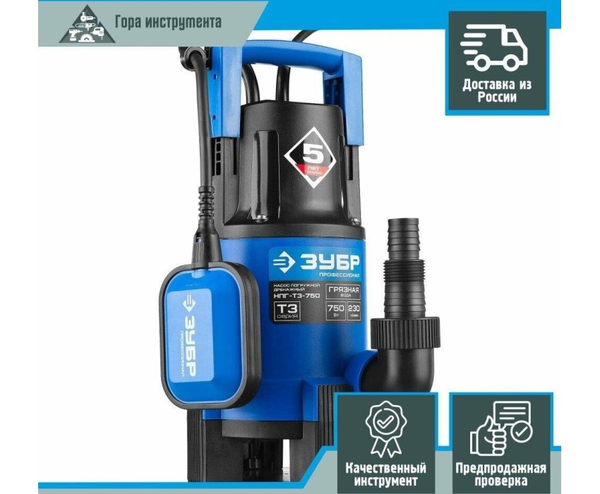 Дренажный насос ЗУБР НПГ-Т3-750 Насос погружной дренажный для грязной воды
