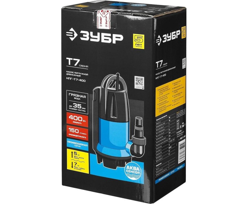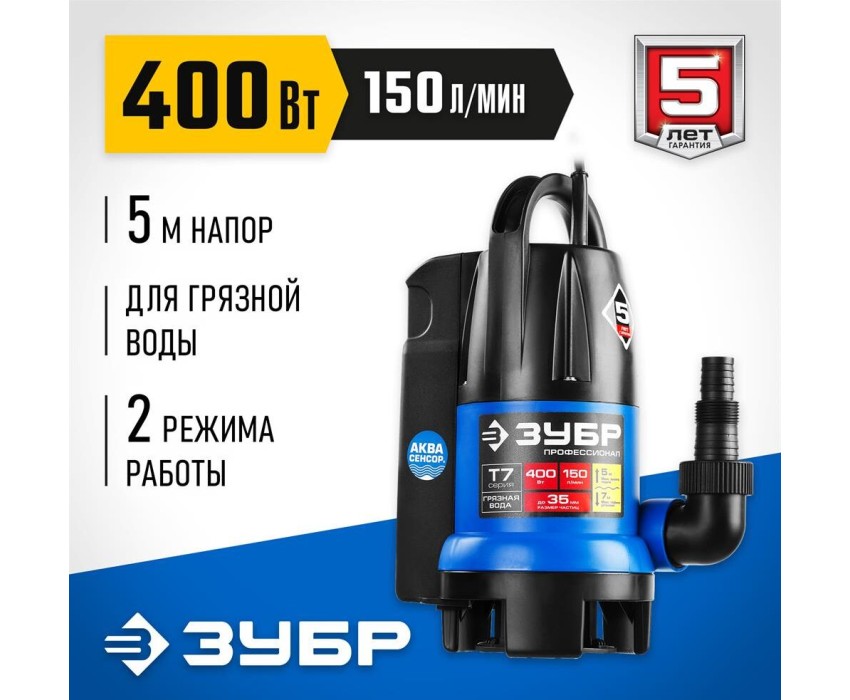 Дренажный насос ЗУБР НПГ-Т7-400 Насос погружной дренажный для грязной воды