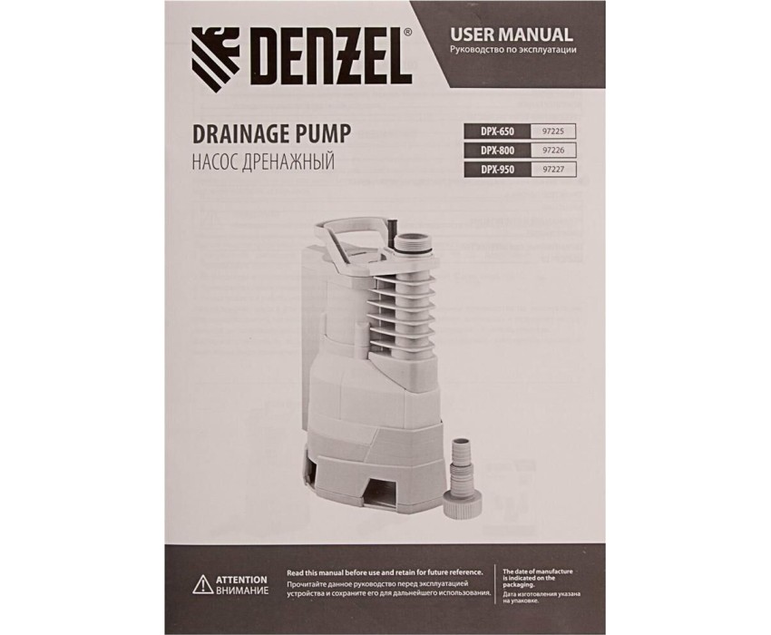 Дренажный насос DENZEL Дренажный насос DPХ650, 650 Вт, подъем 7 м, 11500 л/ч 97225