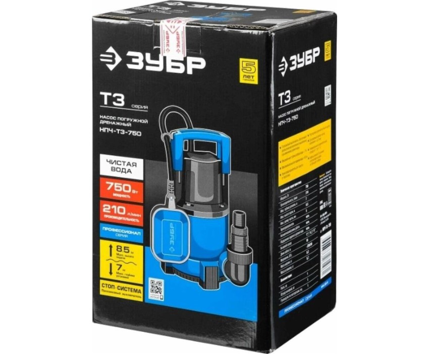 Дренажный насос ЗУБР НПЧ-Т3-750 Профессионал дренажный насос с минимальным уровнем откачки