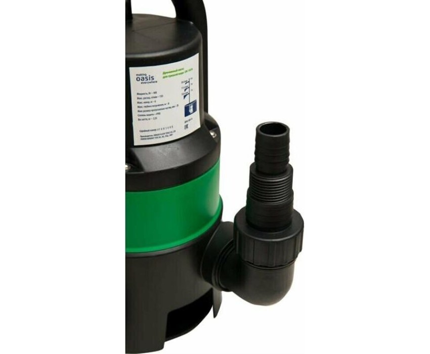 Мощность, Вт - 400. Макс. расход, л/мин - 150. Макс. напор, м - 6. Макс. глубина погружения, м - 8. Макс. размер пропускаемых частиц, мм - 35. Материал корпуса насоса - Пластик. Длина кабеля, м - 10. Материал крыльчатки - Пластик. Габаритные размеры, см - 17х15,8х31,3.