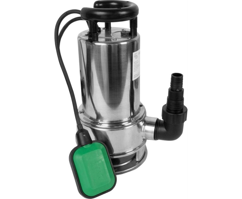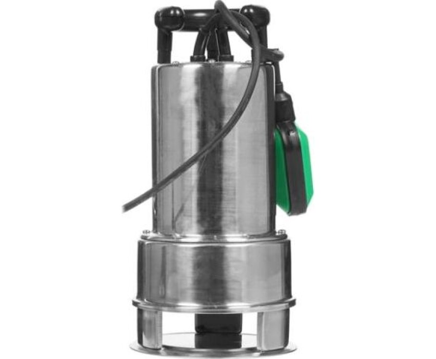 Насос дренажный для грязной воды, мощность 110 Вт, максимальный напор 11 метров, максимальный расход 266 л/мин, максимальный размер пропускаемых частиц 35 мм, максимальная глубина погружения 8 метров, материал корпуса нержавейка