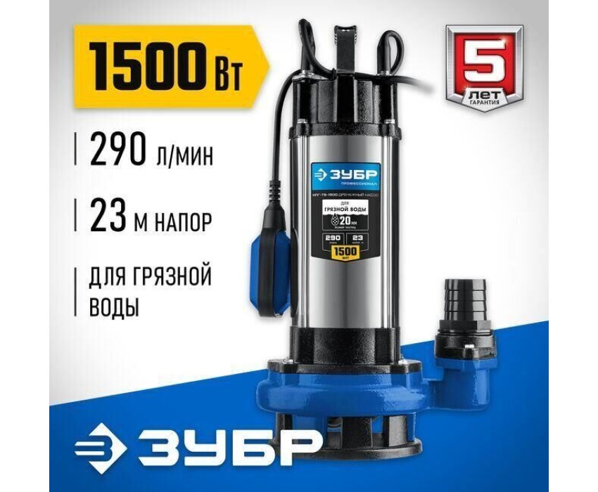 Дренажный насос ЗУБР НПГ-Т5-1500 1500Вт