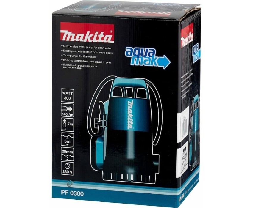 MAKITA Насос дренажный PF0300, центробежный, погружной, 8400л/ч