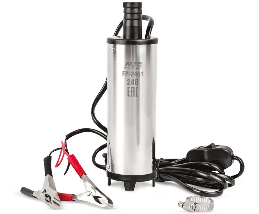 Насос погружной AVS FP-2451 24В диаметром 51мм предназначен для перекачки дизельного топлива из бочки, цистерны или любой другой емкости с узким горлышком. Оснащен несъемным фильтром грубой очистки из нержавеющей стали. Это обеспечивает максимальную длительность эксплуатации. Погружной насос комплектуется выключателем, расположенным на проводе, зажимами типа «крокодил» для подключения к АКБ и металлическим хомутом для обжима шланга. Эксплуатация допускается в широком температурном диапазоне окружающей среды от 5 до 40 градусов. Чтобы начать работу, достаточно присоединить топливный шланг и аккумулятор. Насос имеет четыре опоры, благодаря которым он устойчиво стоит вертикально на дне емкости и не присасывается ко дну. Запрещается использовать для перекачки легковоспламеняющихся или агрессивных жидкостей с высокой степенью летучести паров (бензин, растворители, горючие спирты и т.д.) Комплектация: • Насос с кабелем • Стальной хомут • Инструкция