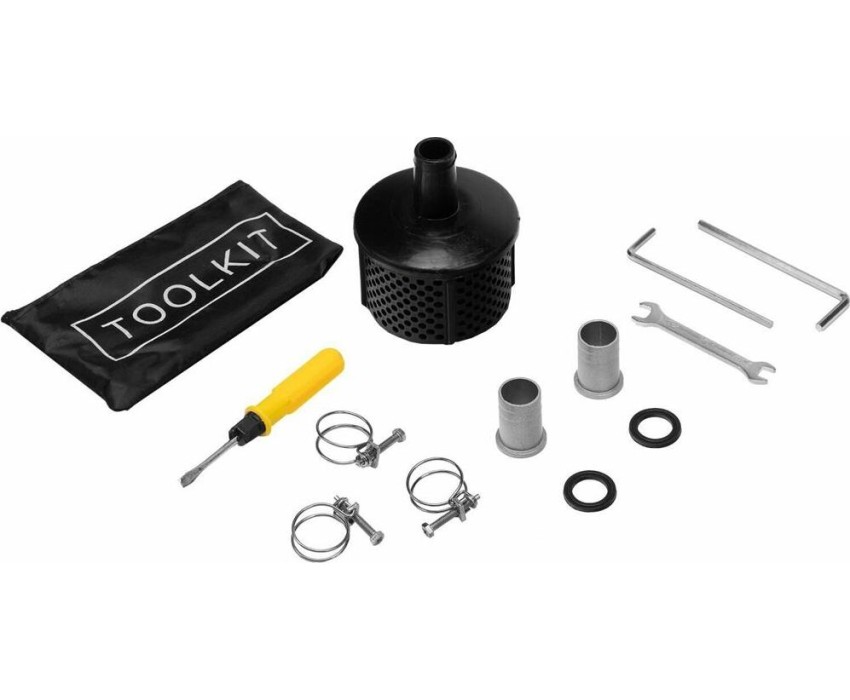 Комплект хомутов 1 шт, Комплект инструментов 1 шт, Руководство по эксплуатации с гарантийным талоном 1 шт, Штуцер 1" 2 шт, Фильтр всасывающий 1 шт, Мотопомпа 1 шт, Дозатор для приготовления смеси 1 шт