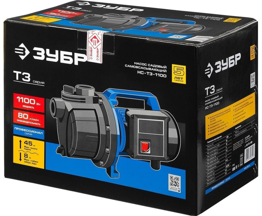 Садовый насос ЗУБР Насос садовый Профессионал НПЦ-Т3-1100, центробежный, поверхностный, 4800л/ч