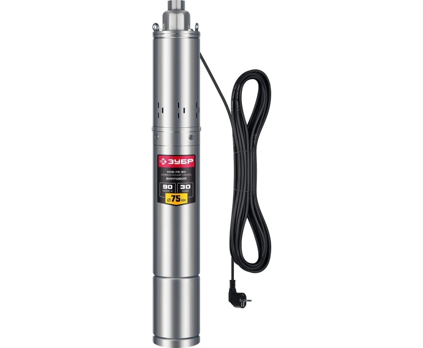 ЗУБР 550 Вт, 90 м напор, скважинный насос винтовой, корпус из нержавеющей стали (НСВ-75-90)