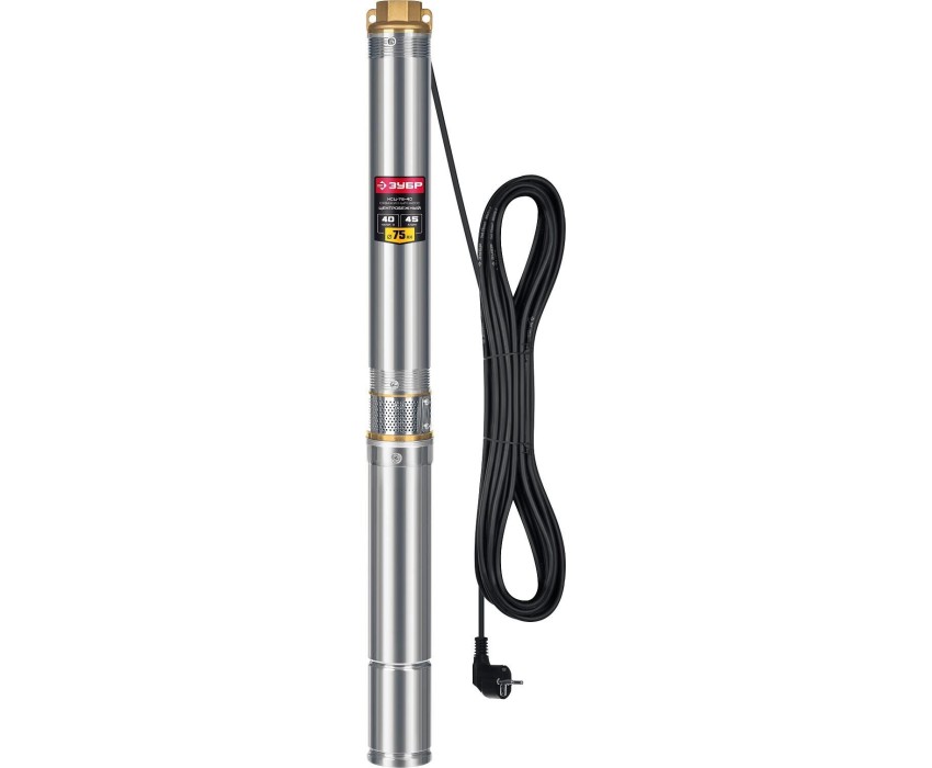ЗУБР 550 Вт, 40 м напор, скважинный центробежный насос, корпус из нержавеющей стали (НСЦ-75-40)