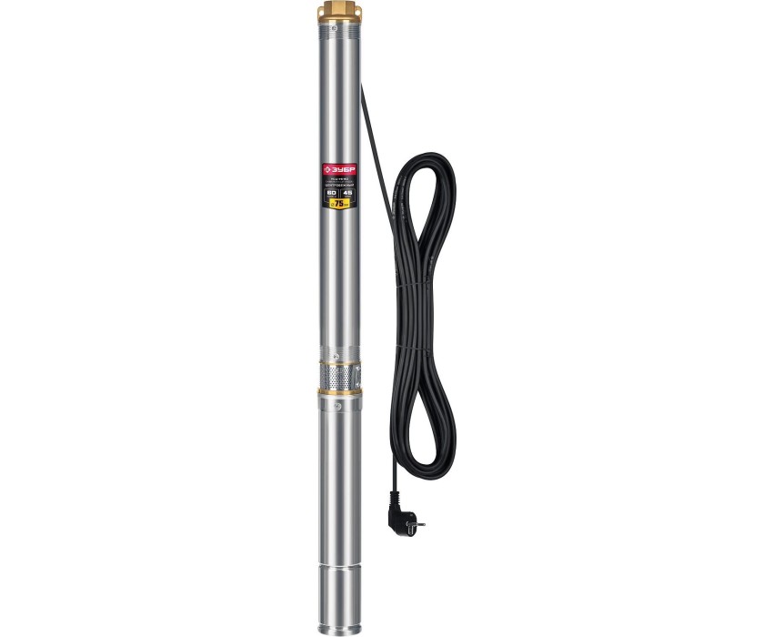 ЗУБР 800 Вт, 60 м напор, скважинный центробежный насос, корпус из нержавеющей стали (НСЦ-75-60)
